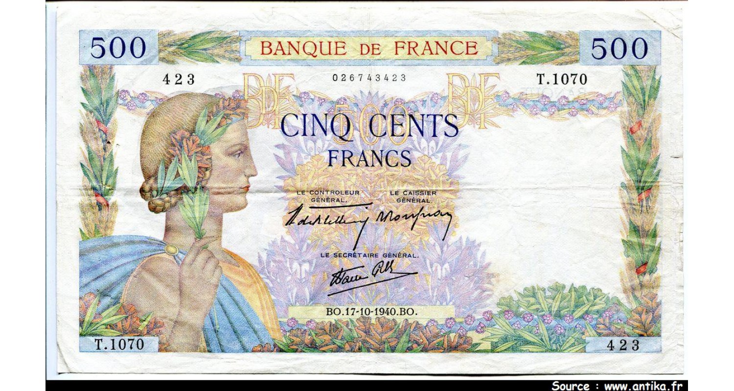 500 FRANCS LA PAIX - Type 1939