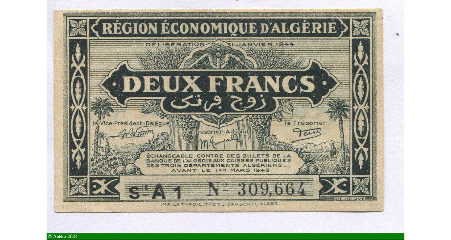 Observation : 2 Francs Région Economique d' Algérie Série A1
