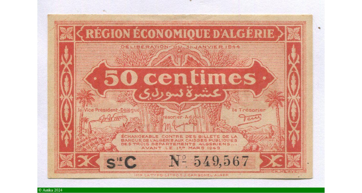 81721 - 50 Centimes Région Economique d' Algérie Série C