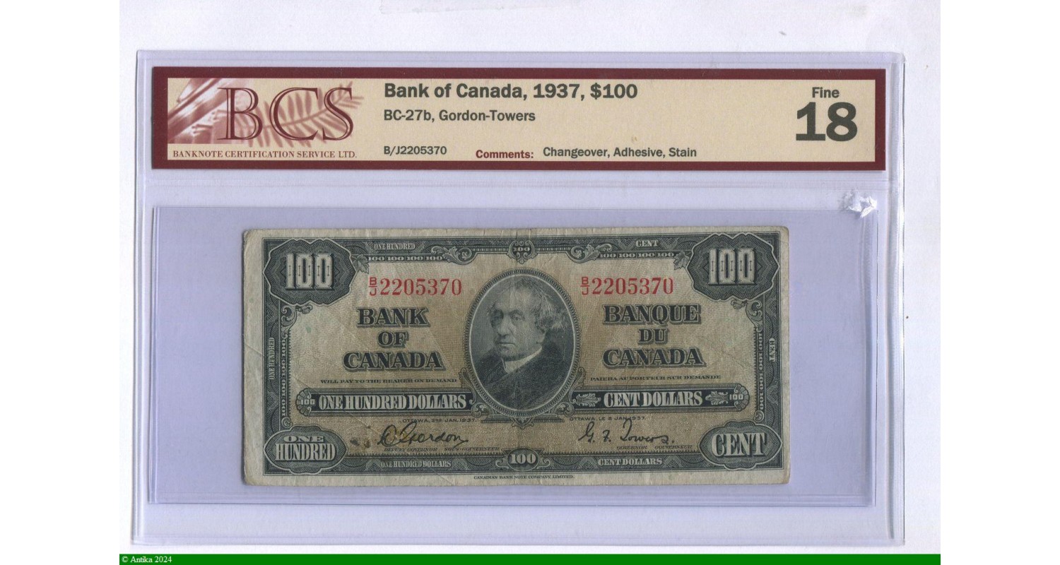 Observation : 100 Dollars Sir John A. Macdonald BCS Fine 18