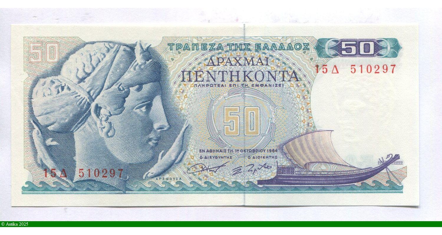 85519 - 50 Drachmai Tête de la nymphe Arethuse