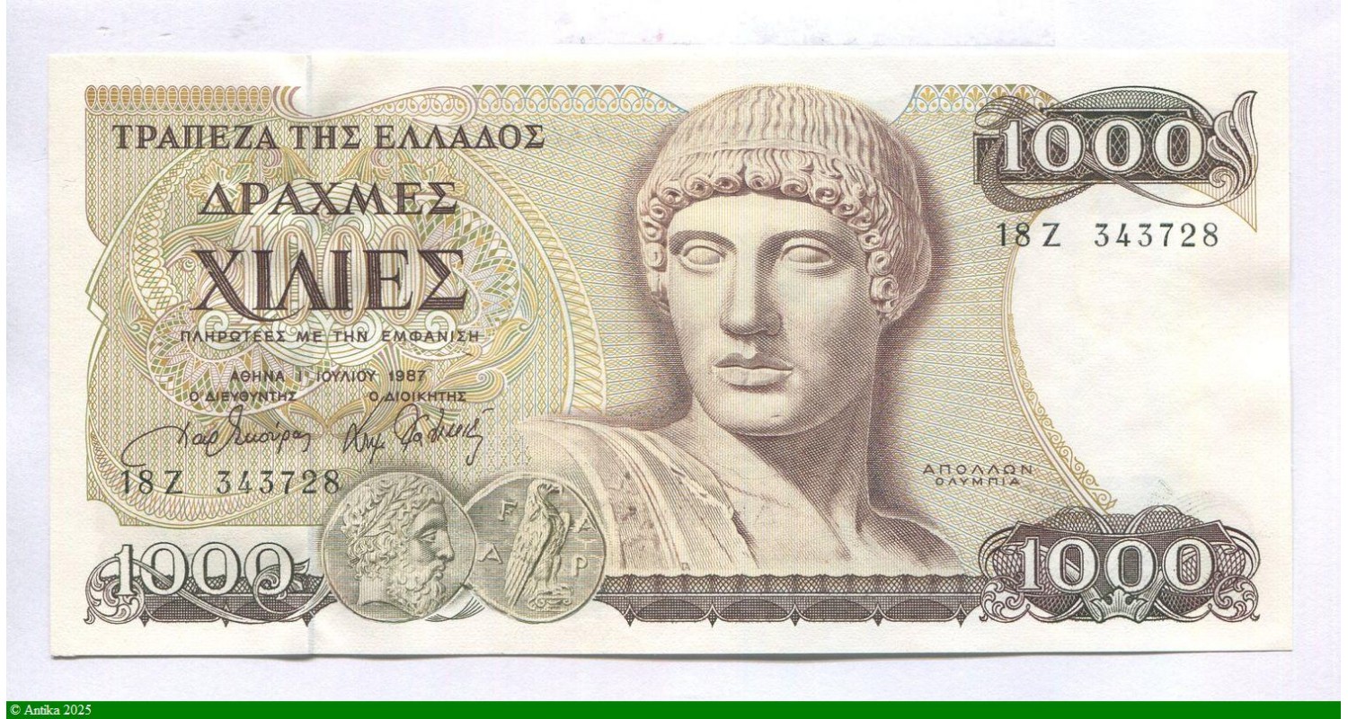 Observation : 1000 Drachmai buste d'Apollon d'Olympie