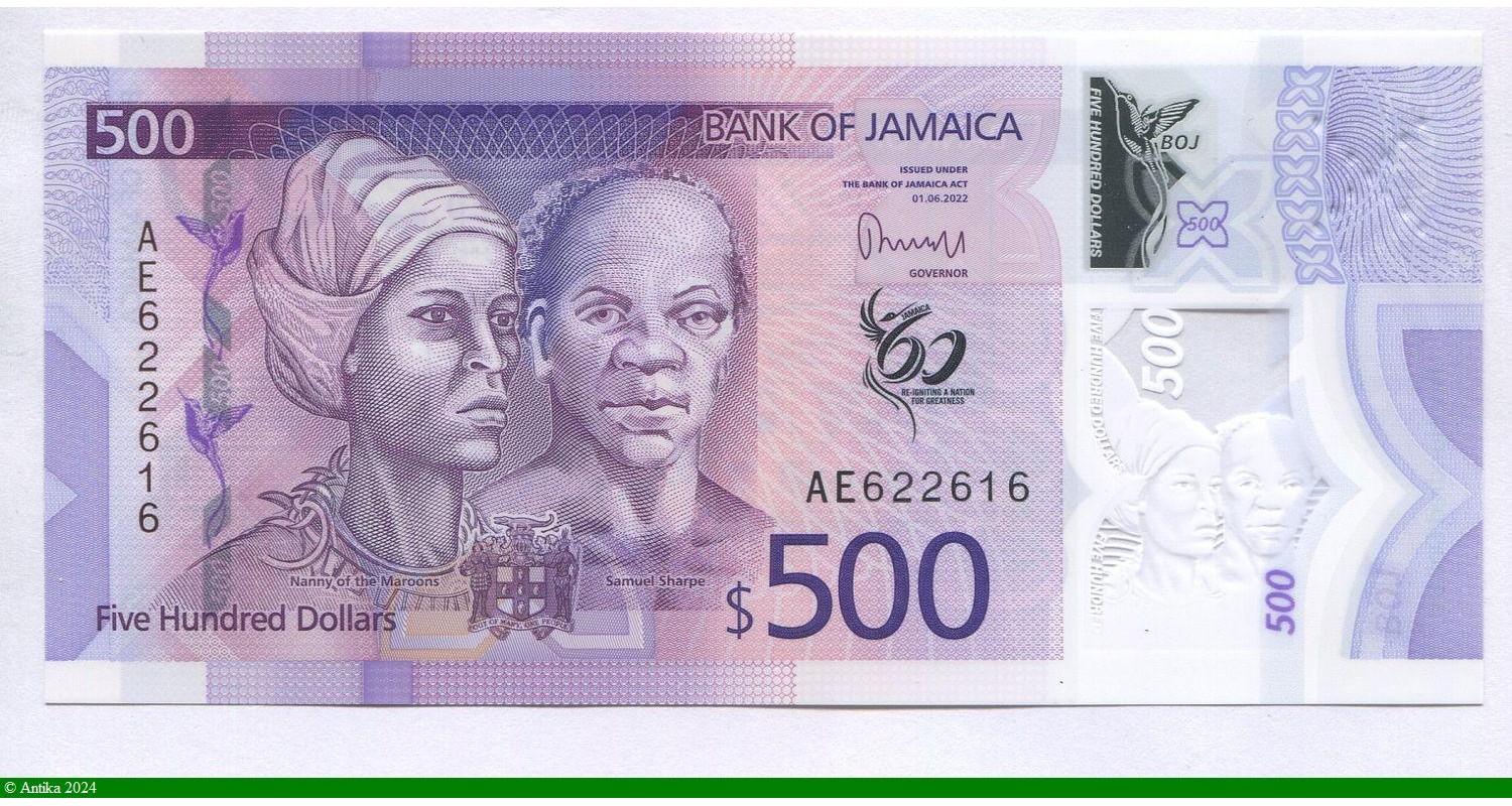 Observation : 500 Dollars Commémo Polymère 60 ans Indépendance N.M & Samuel Sharpe NEW