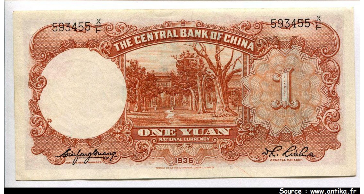 Observation : 1 Yüan Rouge SYS The Central Bank of China Sig:5