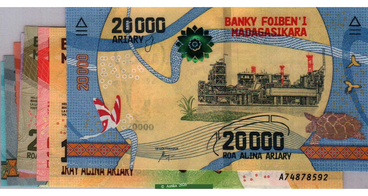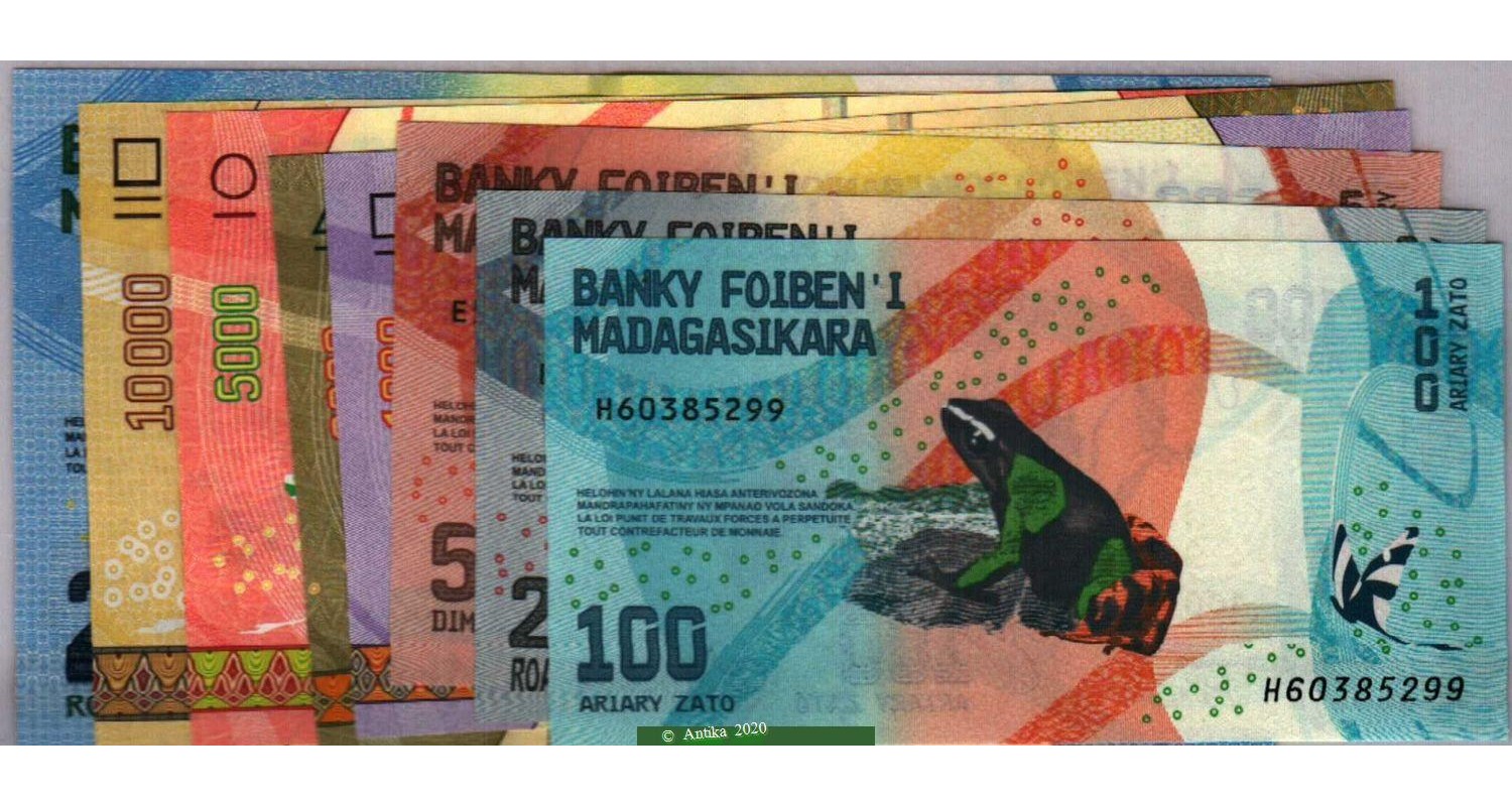 Observation : 100-200-500-1000-2000-5000-10000-20000 Ariary (Lot de 8 Billets)PROMO