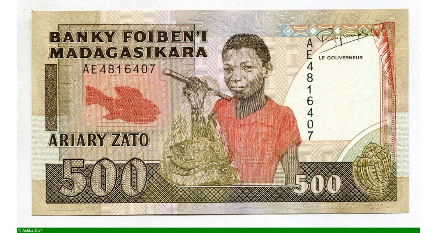 Observation : 500 Francs/ 100 Ariary Enfant tenant un filet de Poissons