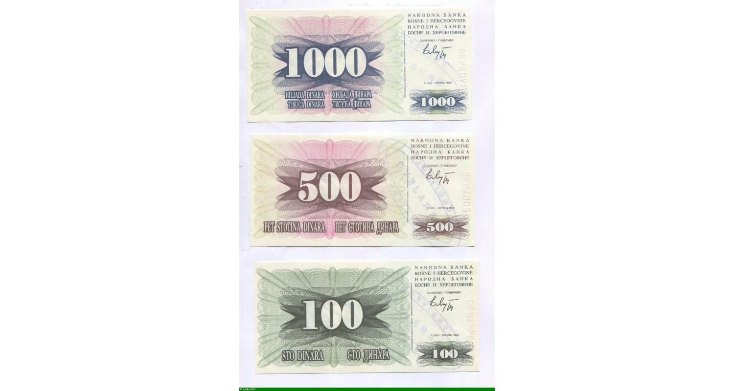 84939 - Lot de 3 Billets 100-500 & 1000 Dinara