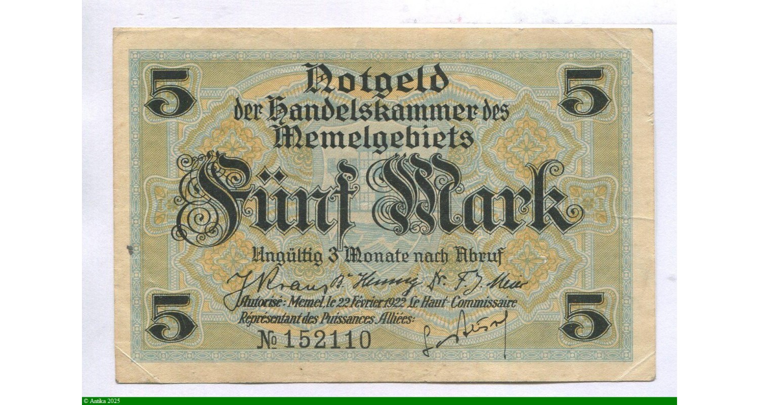 Observation : 5 Mark Territoire de la Baltique occupé par les Puissances alliés.
