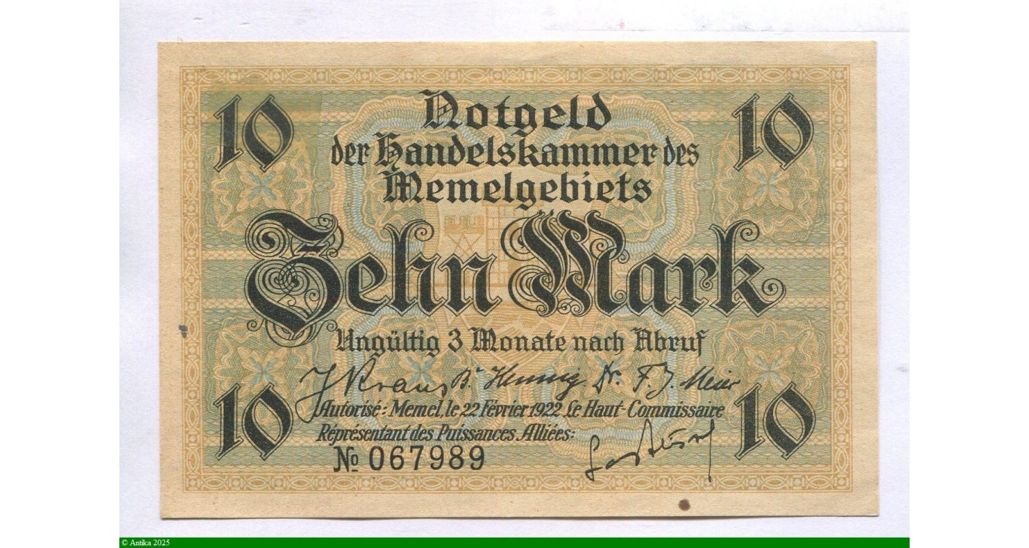 Observation : 10 Mark Territoire de la Baltique occupé par les Puissances alliés.